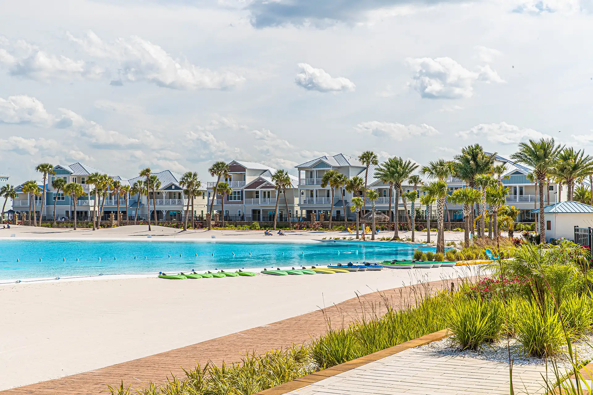 Margaritaville Beachwalk Cottages offers a relaxed lifestyle with resort-style amenities in an intimate, pet-friendly community along Beachwalk’s 14-acre Crystal Lagoon. Our thoughtfully designed cottages feature 2 to 3 bedrooms, perfect for full-time living or a coastal retreat. As part of the Beachwalk master-planned community, residents enjoy exclusive access to a stunning crystal-clear lagoon, ideal for swimming, kayaking, paddleboarding, or simply unwinding along its sugar-sand beaches. The nearby Compass Margaritaville Hotel and an inviting mix of dining, entertainment, and shopping deliver a vibrant, vacation-inspired atmosphere where everyday living feels like a getaway.